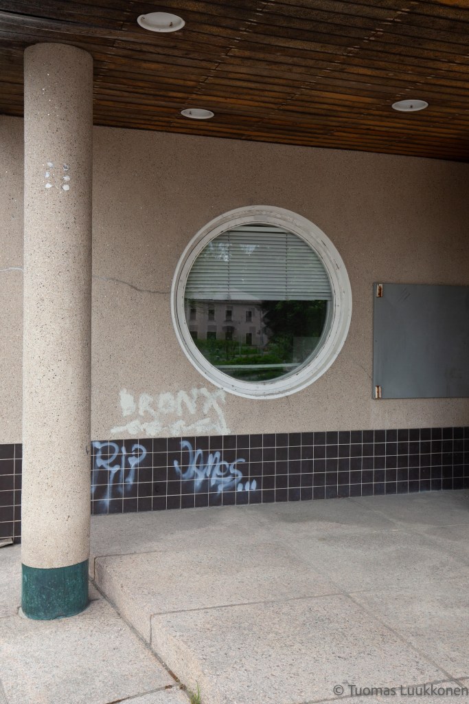 Samaisessa keskustassa on liikekiinteistö jossa on mielenkiintoista arkkitehtuuria. Pylväs ja pyöreä ikkuna. Niistä on otettu kuvia jo aiemmin, mutta vieläkään ei tulos ole sitä miltä se mielikuvana näyttää. Kenties siitä vielä kuvia otetaan.